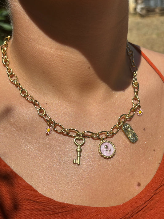 Collier breloque rose