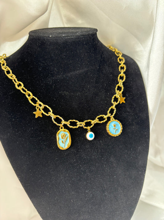 Collier breloque bleu ciel