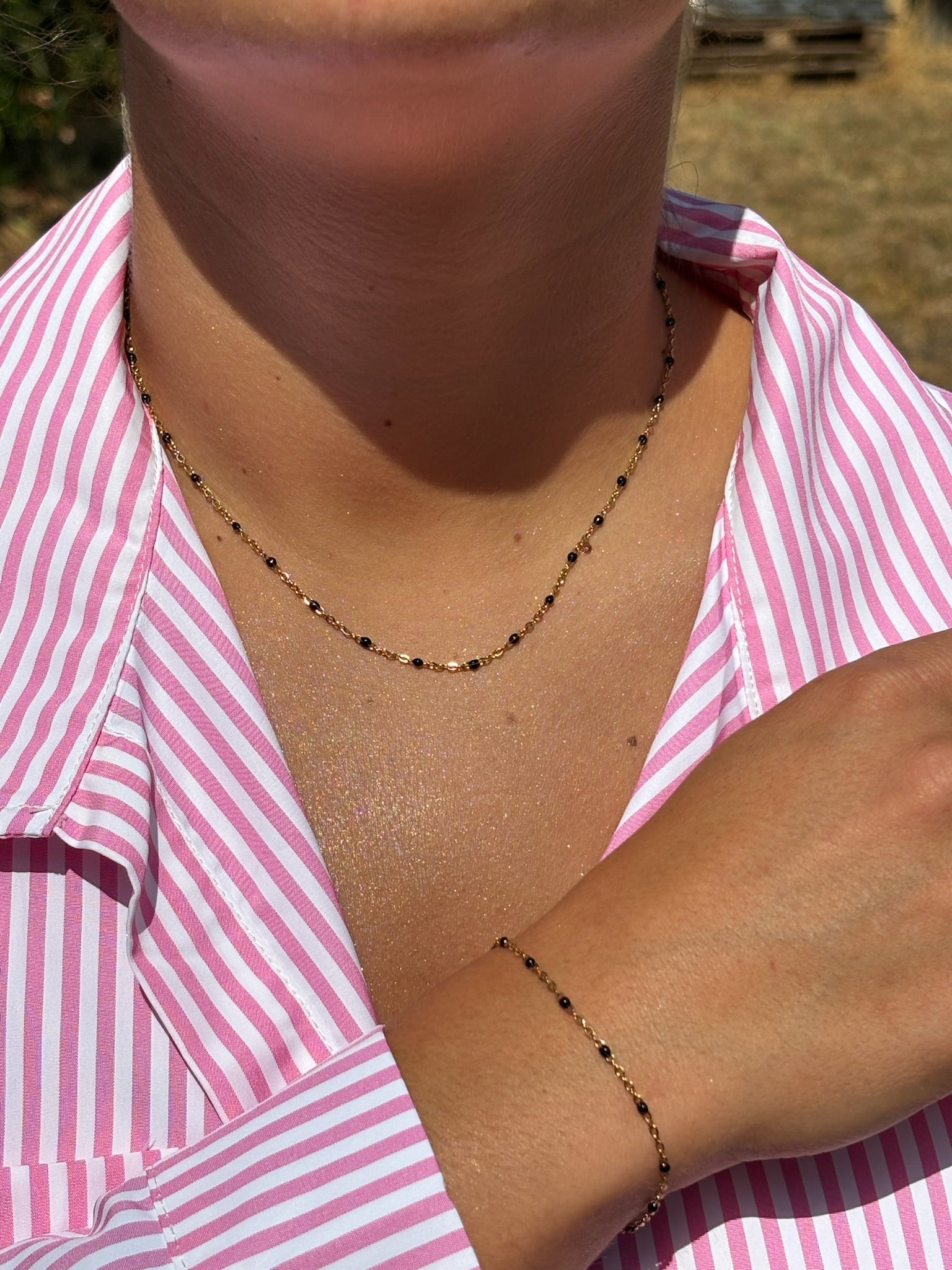 Ensemble bracelet chaîne perlé noir