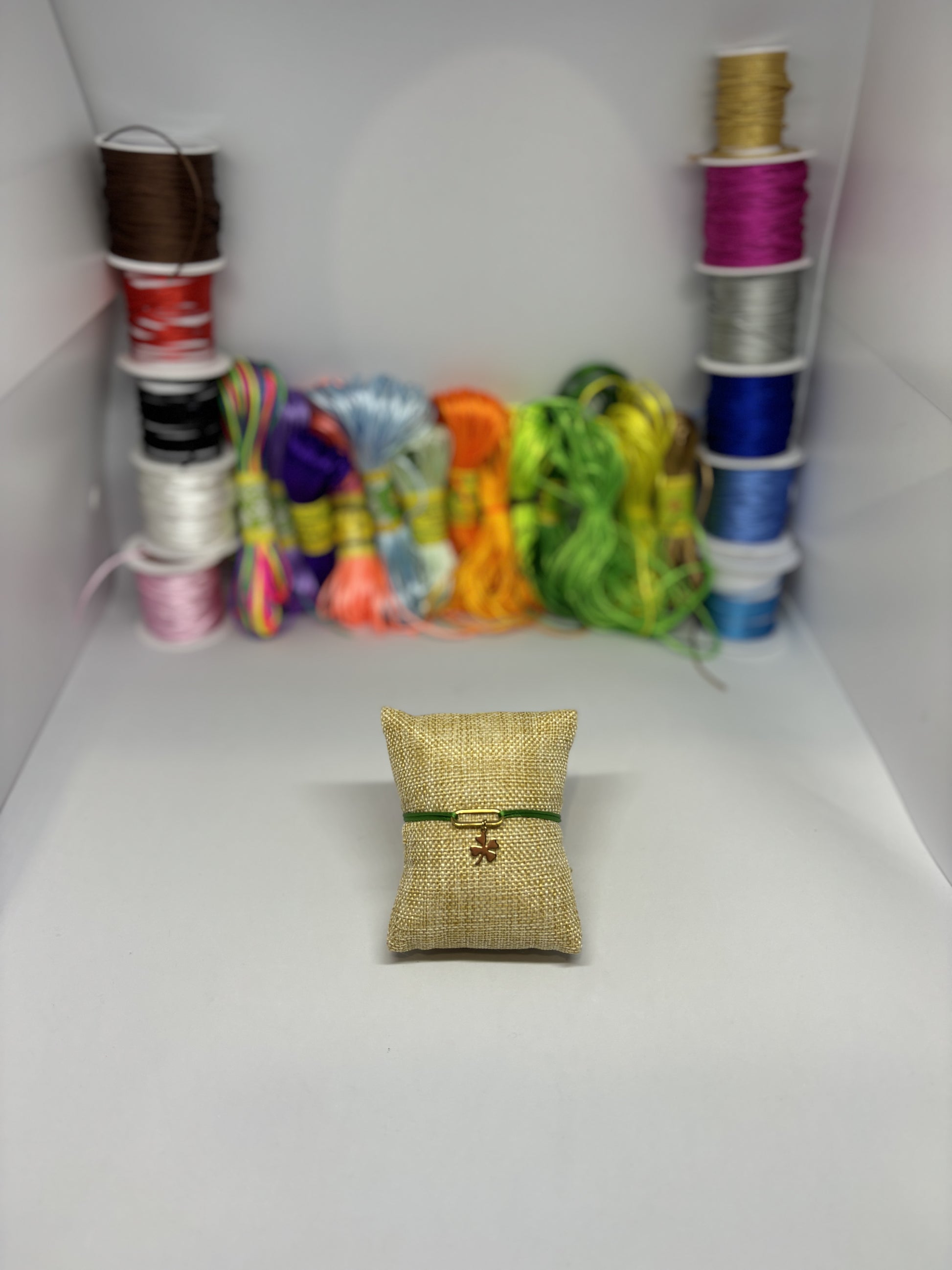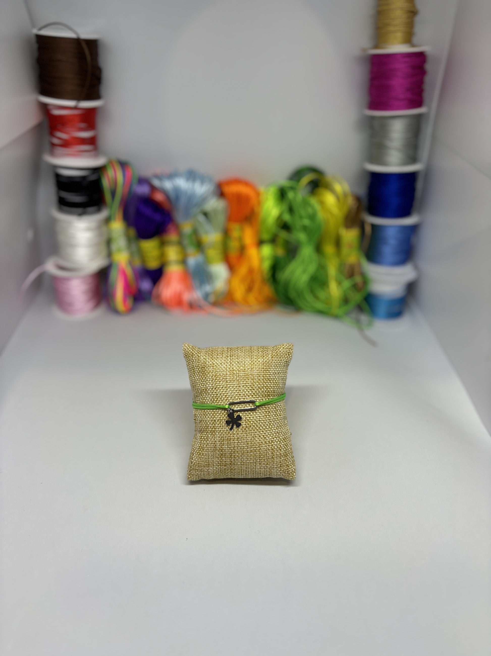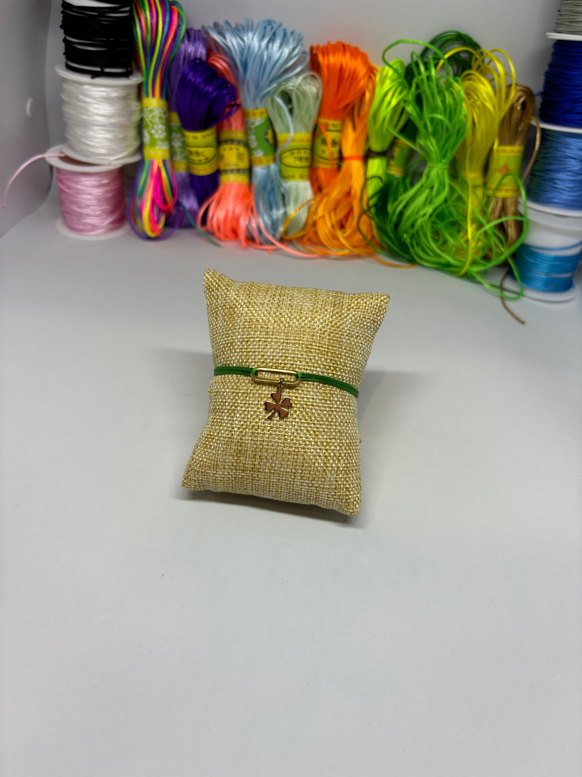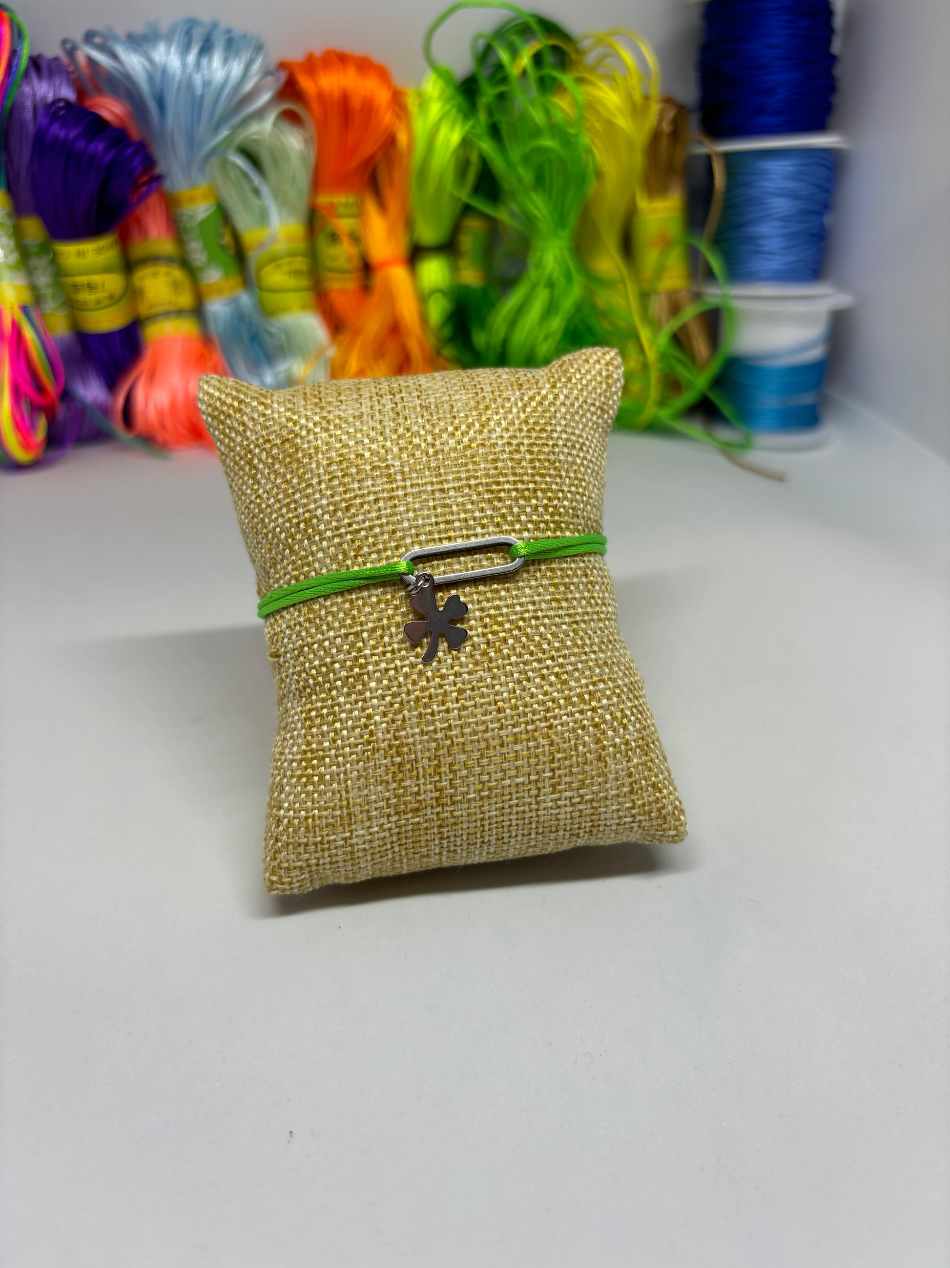 Bracelet cordon ajustable breloque ovale / trèfle