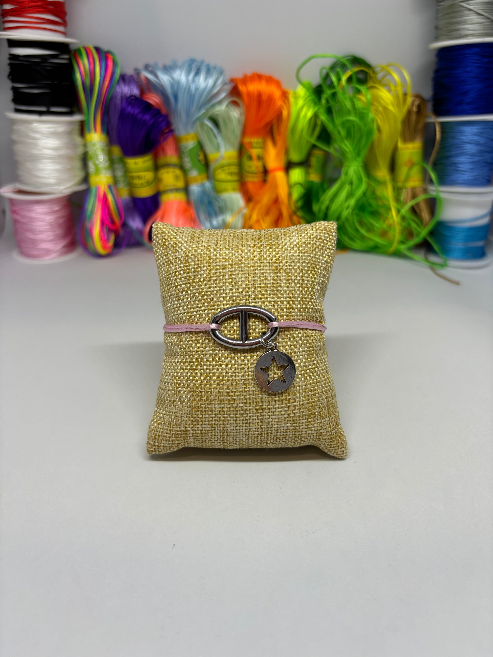 Bracelet cordon ajustable grande maille étoile vide rond