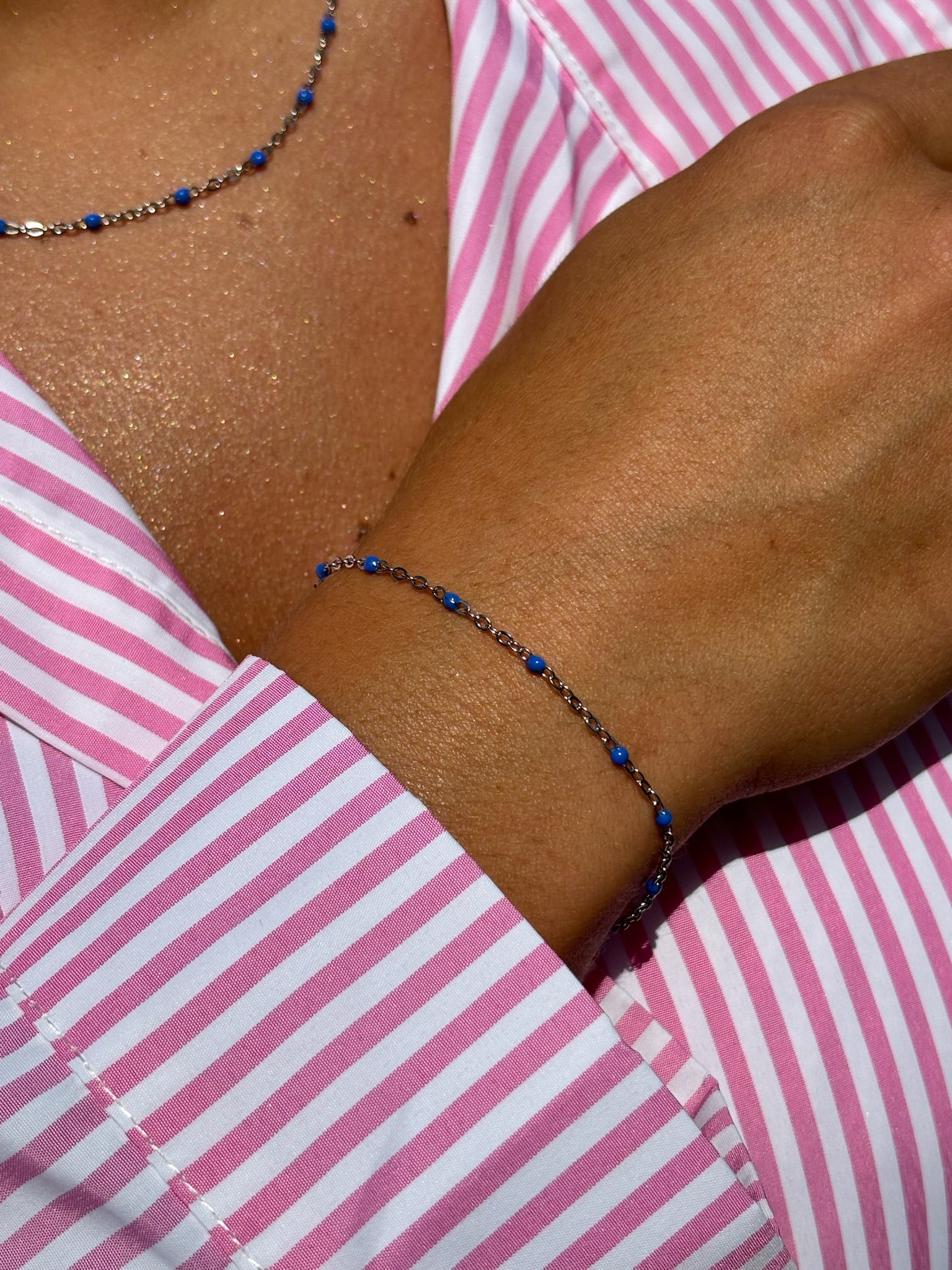 Chaîne de cheville perlé bleu