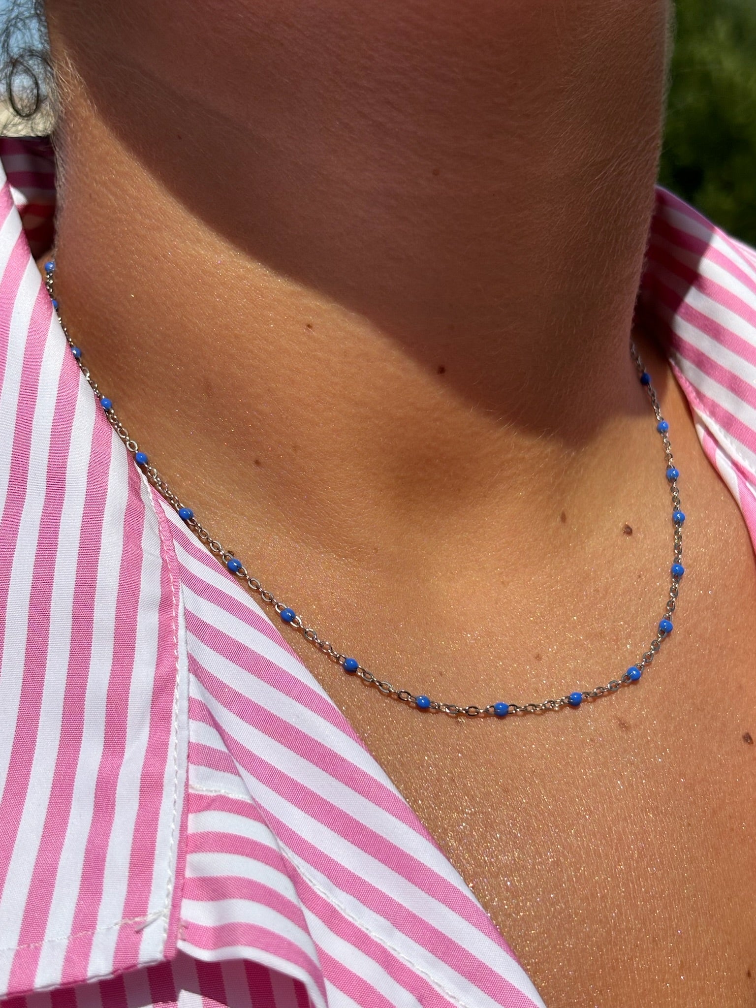 Collier perlé bleu