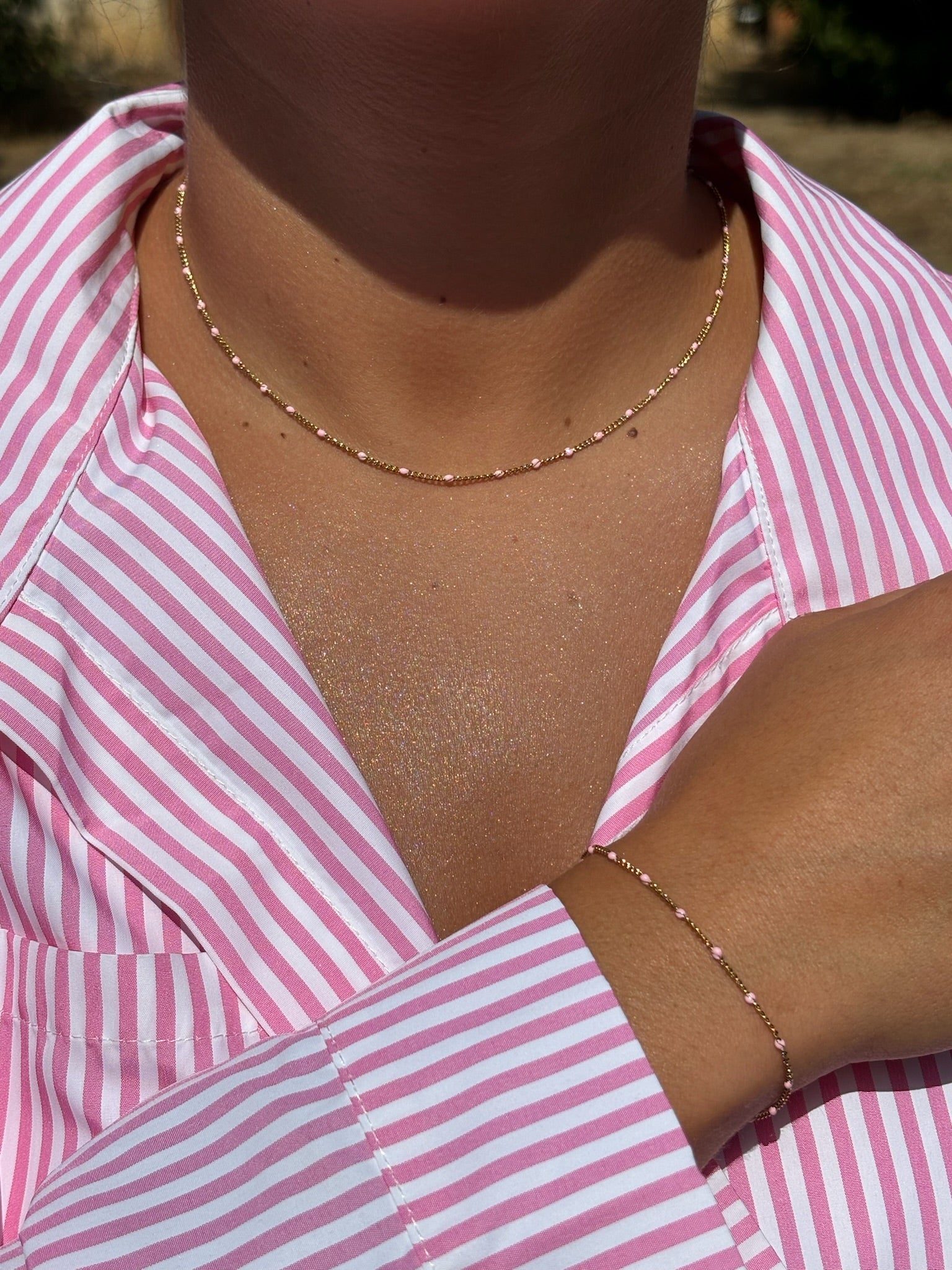 Ensemble chaîne perlé rose